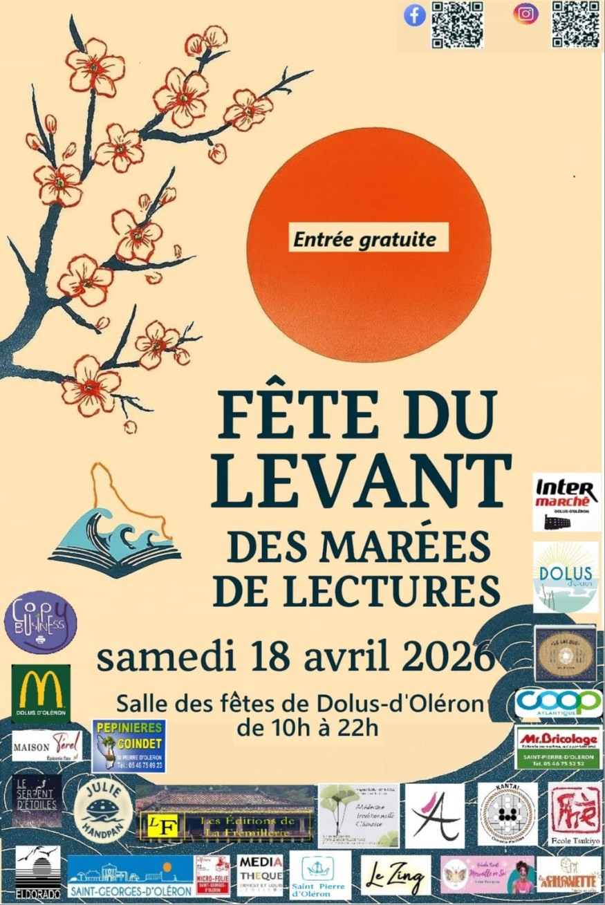 Et pour conclure : notre fête du Levant, samedi 18 avril à Dolus-d’Oléron, un port d’attache pour se retrouver, écouter, jouer, apprendre, goûter, feuilleter, rencontrer… et découvrir que lire ce n’est pas seulement tourner des pages.
