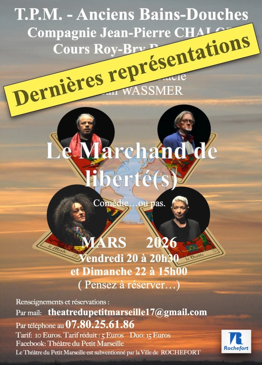 Représentations vendredi à 20h30 et dimanche à 15h au théâtre du Cours Roy Bry à Rochefort.