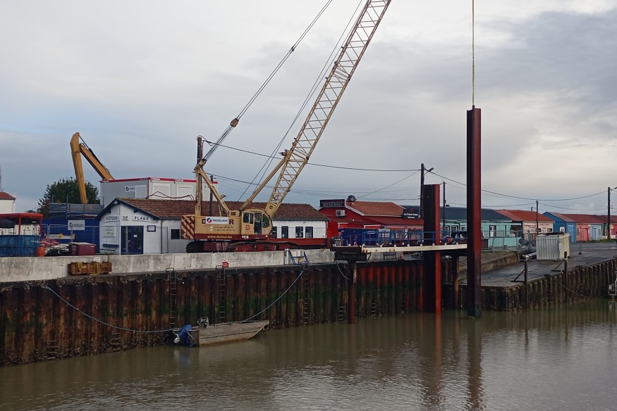 A Saint-Trojan, sur l'île d'Oléron, les grandes manoeuvres au quai Raoul Coulon, au port de plaisance. Le département a lancé en octobre dernier un chantier de réhabilitation des lieux. Le dragage avant travaux s’est déroulé à l’automne, et la construction du nouveau quai a commencé en décembre dernier.