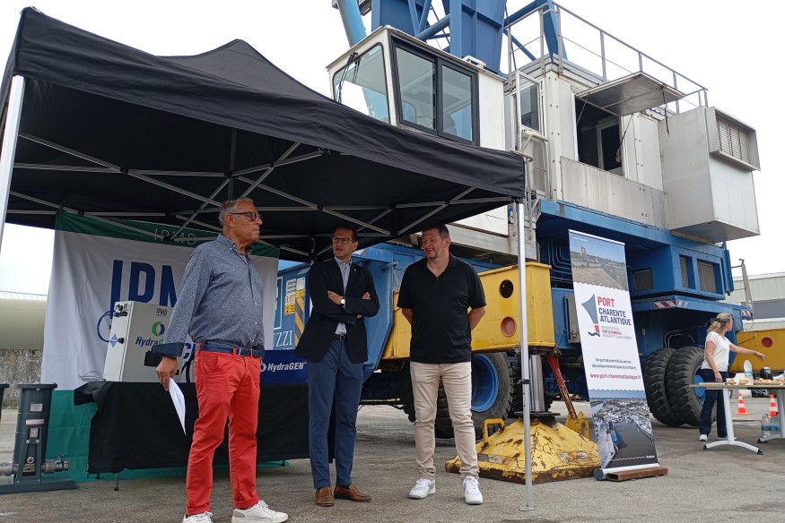 Une première en France au port de commerce de Rochefort. Les responsables du Syndicat Mixte Charente-Atlantique et de la société IPMD ont officiellement installé ce mardi 1er juillet 2025 le premier dispositif “HydraGEN” sur l’une des grues de l'infrastructure portuaire. Vous l’avez deviné à son nom, il s’agit d’un équipement permettant d’injecter de l’hydrogène dans les moteurs des grues.