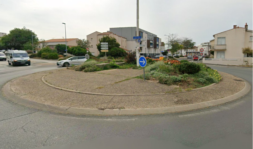 La ville de Rochelle met en place un dispositif de régulation dynamique du trafic au giratoire Odette-Gorin, à la sortie du quartier des Minimes, pour limiter les bouchons de fin d’AM, qui pourrissent la vie des automobilistes. (Photo : Google Street View)