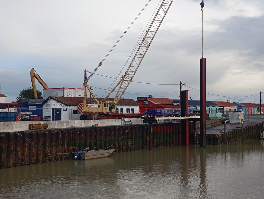 A Saint-Trojan, sur l'île d'Oléron, les grandes manoeuvres au quai Raoul Coulon, au port de plaisance. Le département a lancé en octobre dernier un chantier de réhabilitation des lieux. Le dragage avant travaux s’est déroulé à l’automne, et la construction du nouveau quai a commencé en décembre dernier.