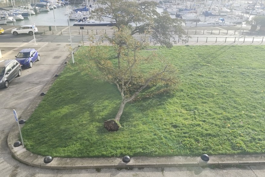 Scènes habituelles pendant ces gros coups de vents, des poubelles renversées, des arbres tombés sur la chaussée, entre Pons et la Jard, à Breuil-magné, près du château de la Gataudière à Marennes, entre Surgères et Muron, par exemple. Un garage automobile de Salles sur Mer a subi de gros dégâts hier soir, indique notre partenaire "Infotrafic17".