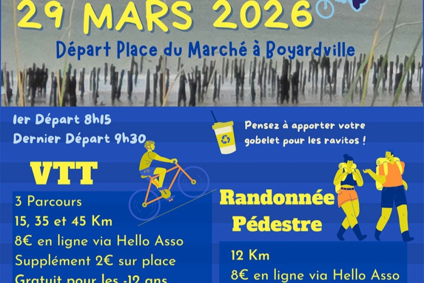 VTT3 Parcours15, 35 et 45 Km8€ en ligne via Hello AssoSupplément 2€ sur placeGratuit pour les -12 ans Randonnée pédestre12 Km8€ en ligne via Hello AssoSupplément 2€ sur placeGratuit pour ...