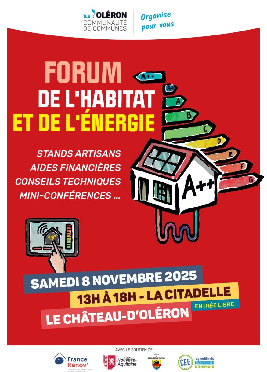 La communauté de communes de l’île d’Oléron invite le public à trouver des réponses concrètes lors de la 3ᵉ é’habitat et de l’énergie, le samedi 8 novembre à la Citadelle du Château d’Oléron. Experts et professionnels seront présents pour guider chacun dans son projet de rénovation.