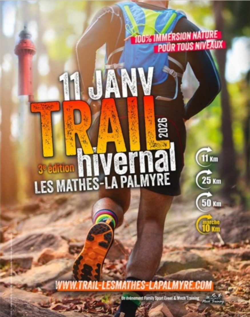 Informations et inscriptions sur https://www.trail-lesmathes-lapalmyre.com
