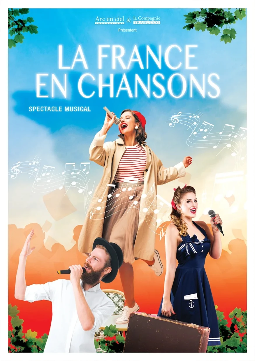 La compagnie Trabucco promet deux heures de spectacle avec entracte, sur les routes de France pour un voyage musical avec de la danse et du rire. Pour un grand moment de spectacle frais, gai et entraînant, avec un programme de chansons françaises.