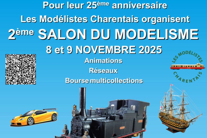 Pour célébrer leurs 25 ans, les Modélistes Charentais organisent la 2ᵉ édition de leur salon du modélisme.Au programme : animations, réseaux miniatures et bourse multi-collections.