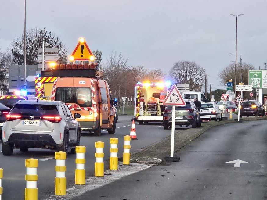 A Rochefort, un accident de la route au rond-point provisoire du quartier libération. Le carrefour en forme d'amande est en expérimentation depuis plus d'un an.